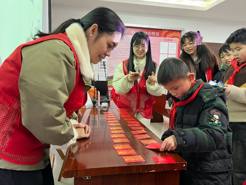 志愿者和同学们进行“翻红包”游戏。谢文筠 摄