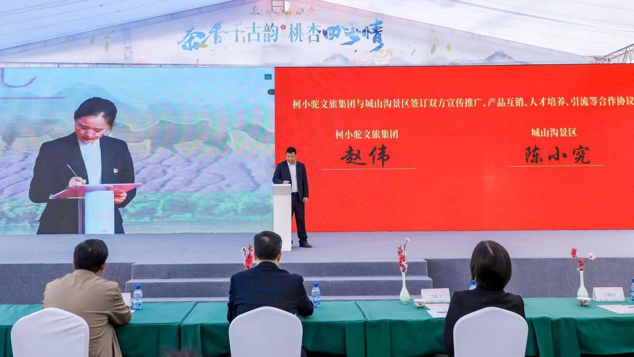 开幕式上,长兴县城山沟景区与柯坪县杏花村景区举行了“云”签约仪式,通过现代科技手段实现了跨越千里的合作。签约方负责人表示,这一举措不仅加强了两地旅游资源的整合,也深化了双方在文化、经济等多个领域的交流合作。将以此为契机,双方在宣传推广、产品互销、人才培养、引流等方面加强合作。