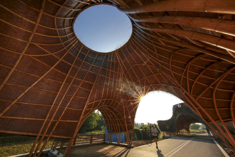 浙江省湖州市安吉县天荒坪镇余村村,游客在道路上健身。CICPHOTO/潘学康 摄