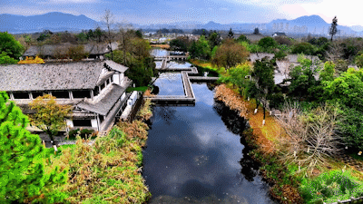 仿古建筑静静伫立,与周围景观形成和谐之美。新华网发