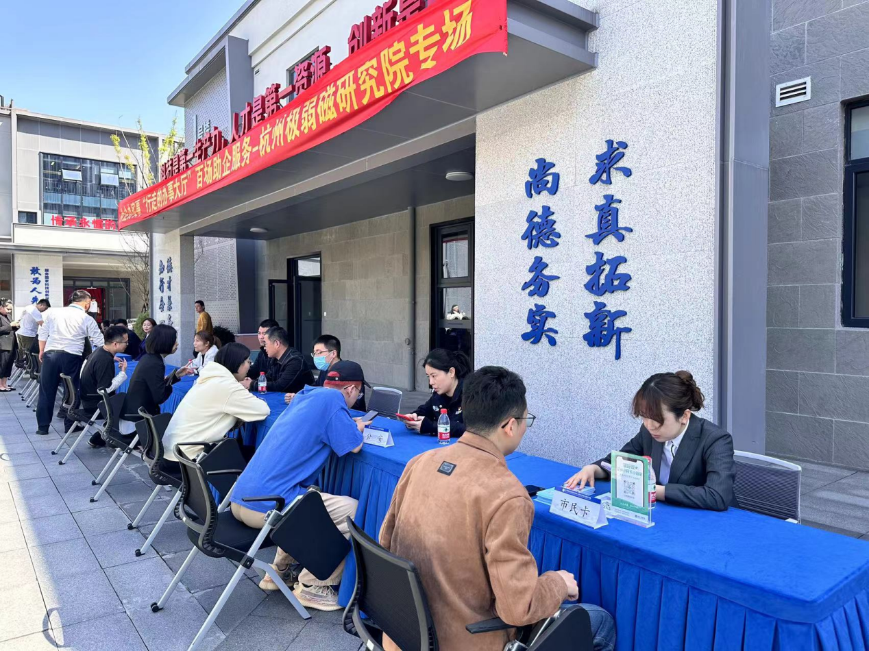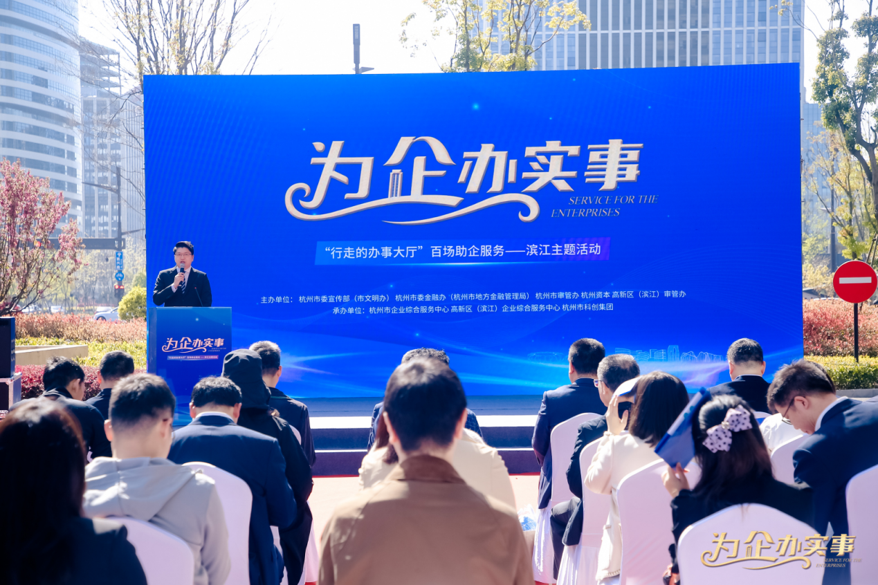 3月29日,“深化改革强基固本 市区联动提质增效”暨“为企办实事‘行走的办事大厅’百场助企服务—杭州市滨江区主题活动”在浙江省杭州市高新区(滨江)人才·企业服务站广场举行。