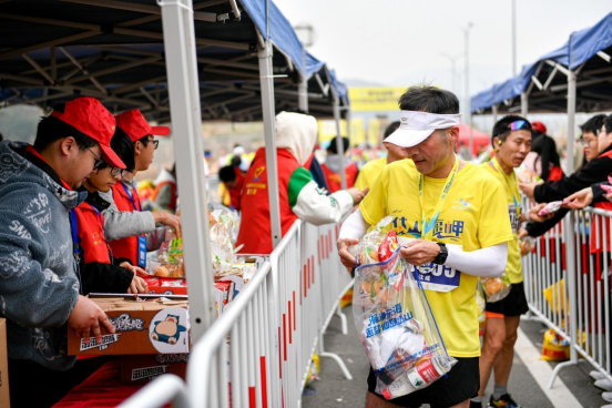 赛后更有50名志愿者为选手提供拉伸服务,帮助选手们尽快恢复活力并减轻身体负担。在赛道沿途每100米设置1名医疗观察员。岱马组委会还安排了免费接驳车、奖牌刻字、号码布塑封等各类贴心服务,让每一位跑友都感受到“岱马温度”。