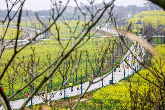 5000名选手欢呼着冲出起点,穿过灿烂的油菜花海,奔赴一场浪漫的山海之约,领略海岬风光。
