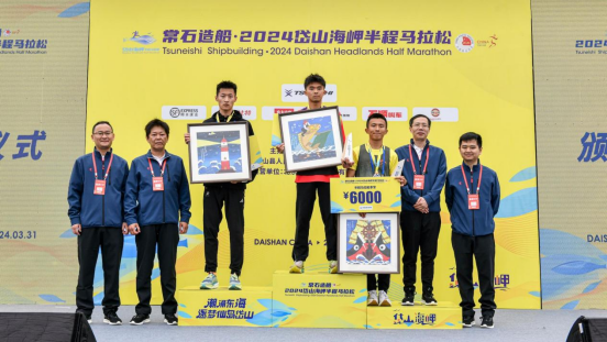 在赛后的颁奖仪式上,组委会还为获得半程马拉松项目前三名的选手送上了“岱山礼物”——岱山渔民画。希望这些充满意义的渔民画伴手礼成为选手珍藏的岱山记忆。