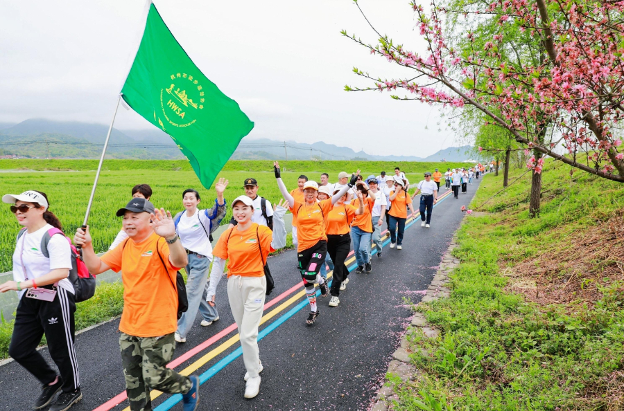 本次活动共300余名徒步爱好者参与,主要来自富阳及萧山、嘉兴等地。第一位到达终点的选手赵伟忠说:“这条线路太美了,春天就适合出来徒步。全程走下来非常舒服,我平时经常参加徒步、登山活动,所以一点也不累。”