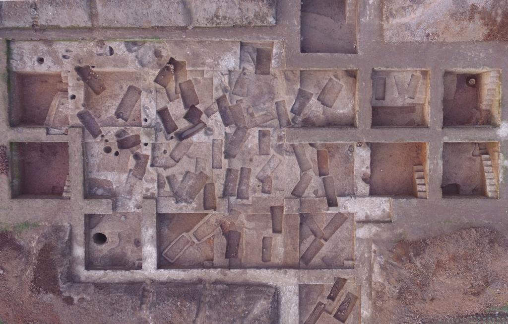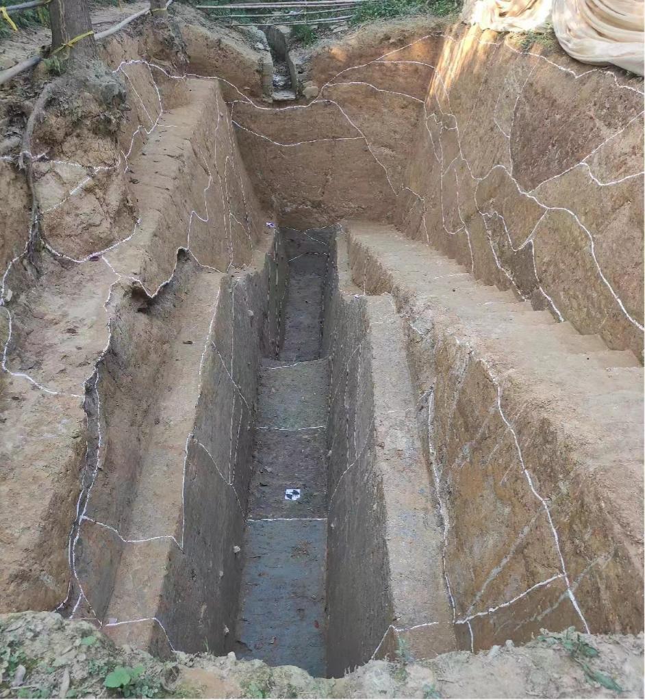 磨盘山遗址崧泽文化墓葬区的考古现场。磨盘山考古队供图