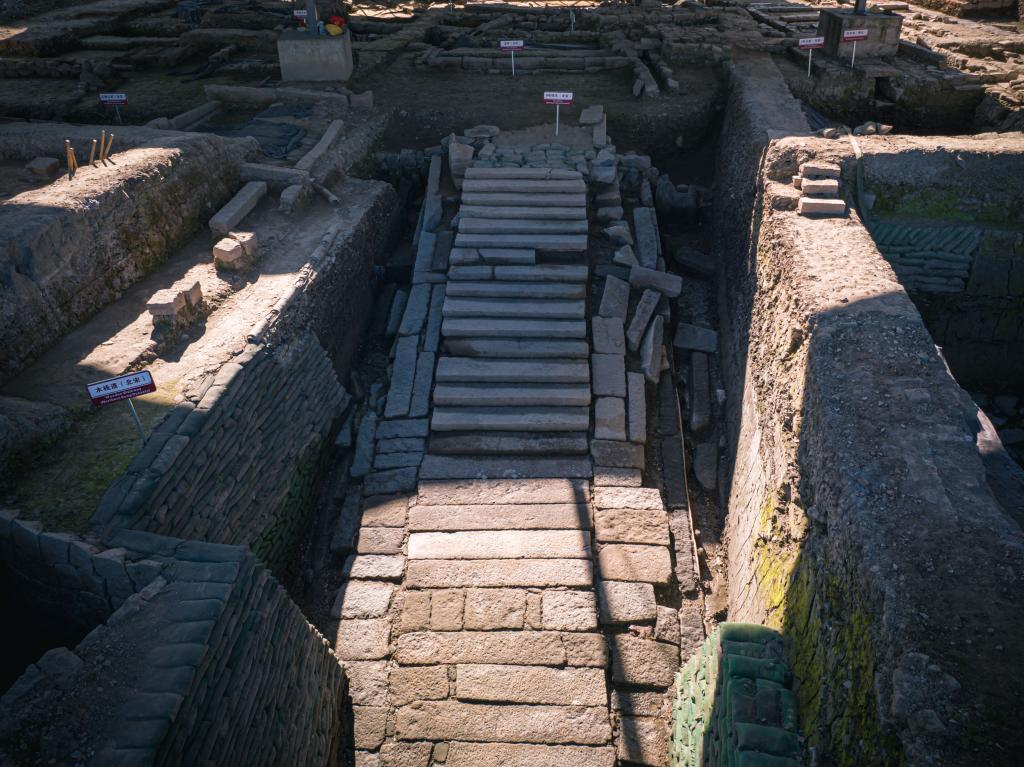 2023年11月23日拍摄的温州朔门古港遗址古码头(无人机照片)。新华社记者 江汉 摄