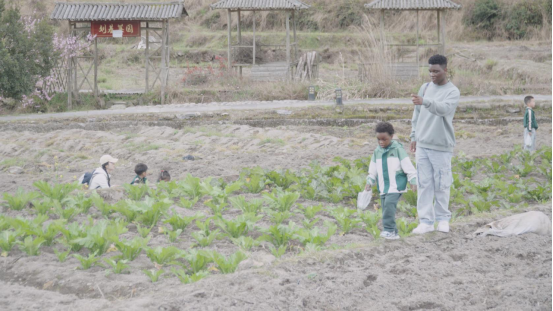 小朋友们在家长老师的陪伴下经过田间小巷,停在田地间。随后,老师教大家识别鼠曲草,介绍清明时节采鼠曲草制作清明果的传统习俗,并指导学生们辨认采摘鼠曲草的技巧。