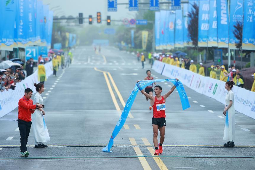 来自浙江绍兴的张立钢以1小时8分37秒的成绩获男子组冠军。乐清市委宣传部供图