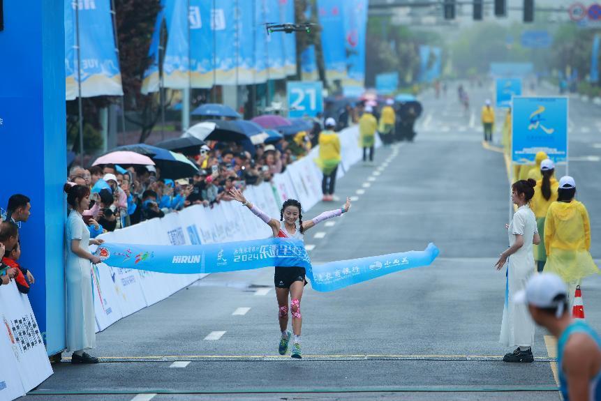 来自浙江杭州的唐晓芳以1小时19分39秒的成绩摘得女子组冠军。乐清市委宣传部供图