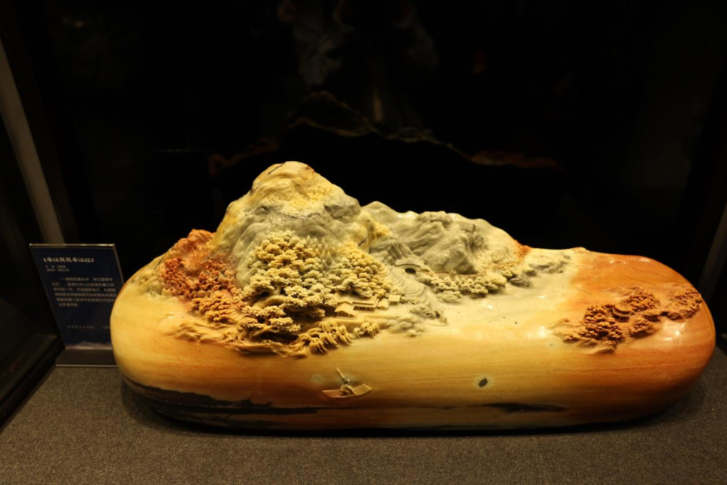 石雕作品《半江瑟瑟半江红》,作者:何细造。