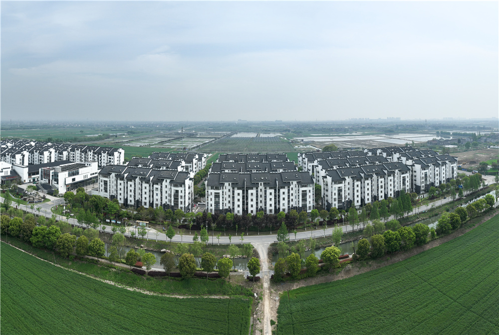 在浙江湖州义皋村拍摄的安置上岸渔民的义皋新村(无人机照片,4月11日摄)。