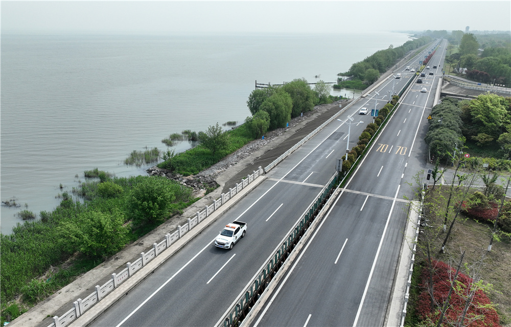 4月11日,浙江湖州吴兴区综合行政执法局高新区中队开着巡逻车在太湖沿岸巡查。湖州市以河湖长制工作为抓手,建立多方协作机制,常态化开展联合巡查执法活动。