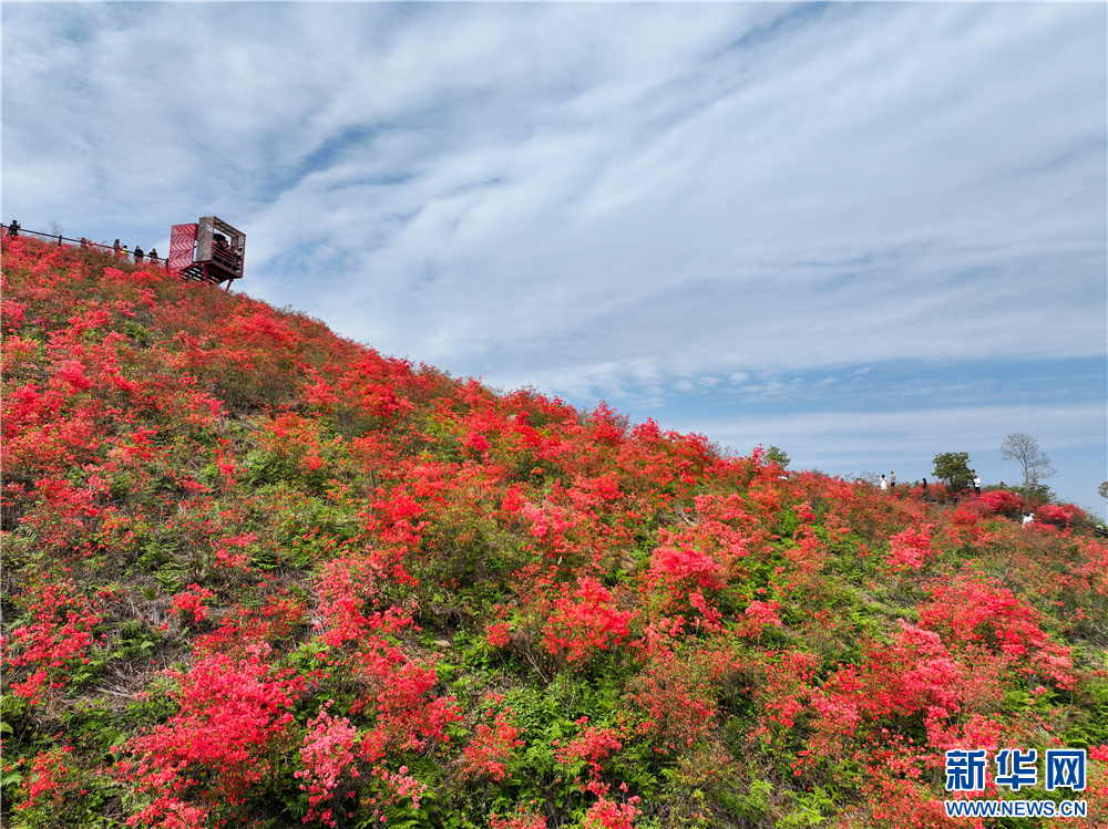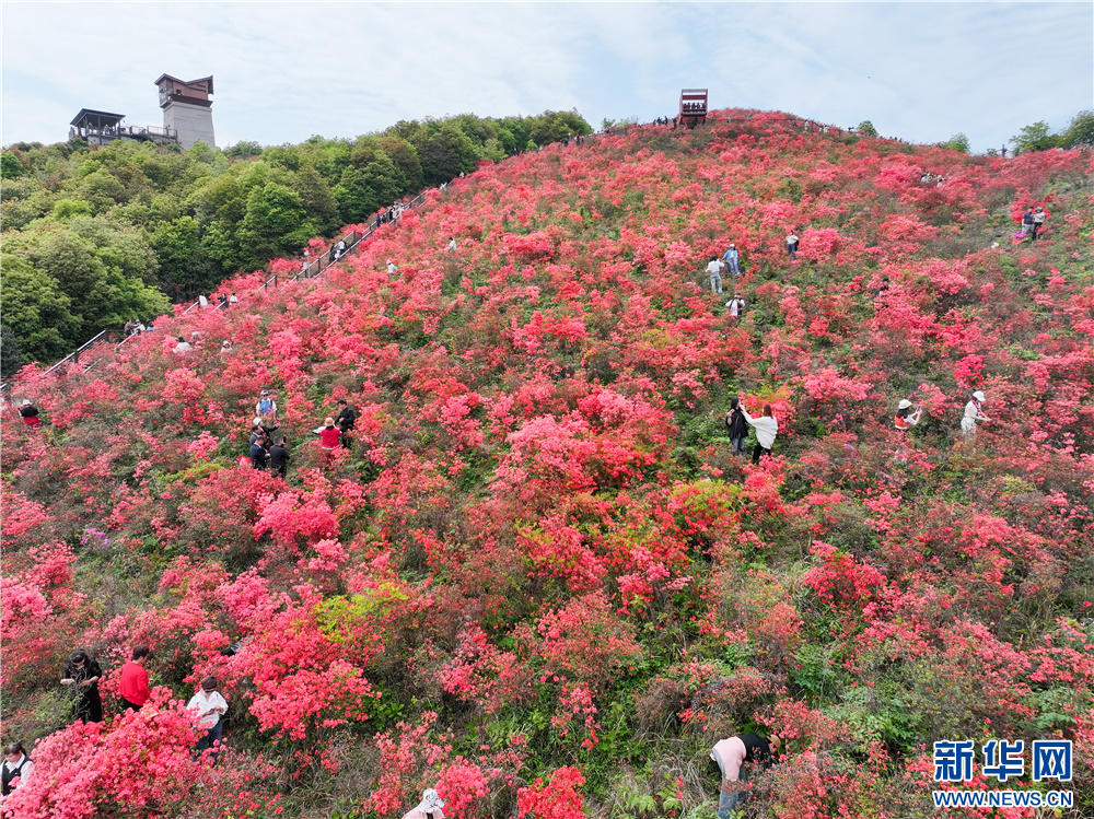 “特别是今年,雨水充足,日照适宜,使圣井山杜鹃花开得格外灿烂,山顶的杜鹃花已经盛开到100%,中段区的杜鹃花也达到75%。”圣井山风景旅游服务所工作人员介绍说。