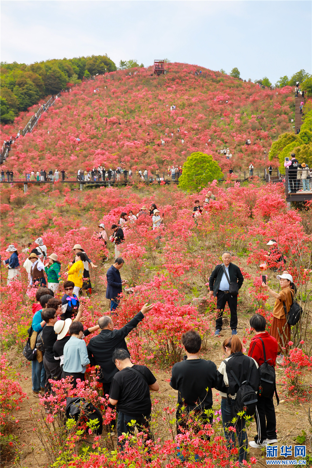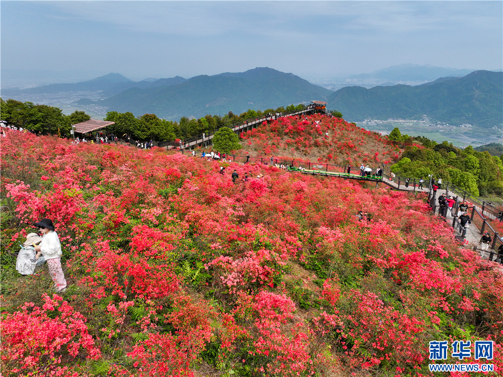 四月,山花烂漫、万木吐翠。浙江圣井山的千亩杜鹃花海迎来了最佳观赏期,漫山遍野的杜鹃花竞相绽放,美不胜收,吸引了大量游客前来打卡。