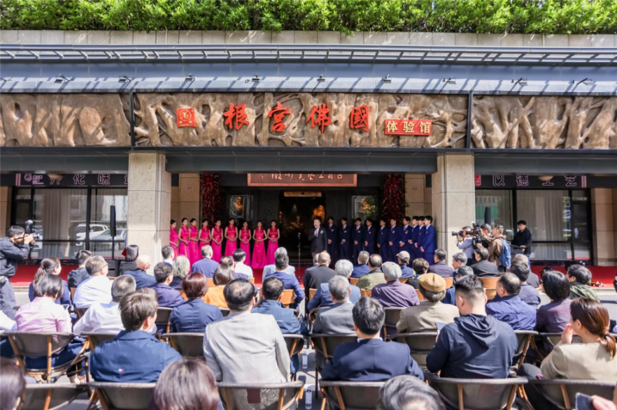 作为一家兼具艺术展览、艺术论坛与人文交流、休闲体验等综合性功能的工艺美术馆,根宫佛国体验馆是一座中式风格的庭院式建筑,以中国优秀传统文化为底蕴,融合现代装饰艺术与新古典主义风格,由根雕工艺美术馆、根雕工艺美术体验馆、醉根雅社等单元构成。
