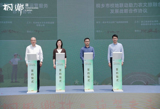 在活动现场,桐乡市人民政府与与省农创客发展联合会、省文创协会等平台签订战略合作协议;桐乡市农业农村局与杭州市他乡团队签订市域全域乡村运营招商合作协议,濮院镇与乡伴签订镇域全域乡村运营协议……随着一批优质项目的落地,桐乡乡村将更加精彩。