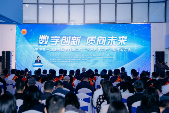 为助力杭州数字经济创新提质“一号发展工程”,大力弘扬劳模精神、劳动精神、工匠精神,4月25日,杭州市总工会庆祝五一国际劳动节暨第二届“杭州数字工匠”认定发布会在浙江省杭州市临平区艺尚小镇举行。59名杭州数字工匠和10名杭州数字工匠提名奖名单发布。
