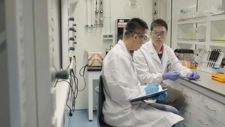 图为西湖丝创生物科技有限公司创始人郭成辰(右)和团队在实验室中。(图片由采访对象提供)