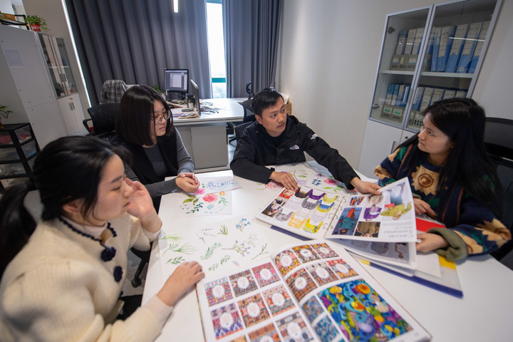 浙江大树纺织科技公司研发部的员工在一起讨论新印花的设计。新华每日电讯记者 江汉摄