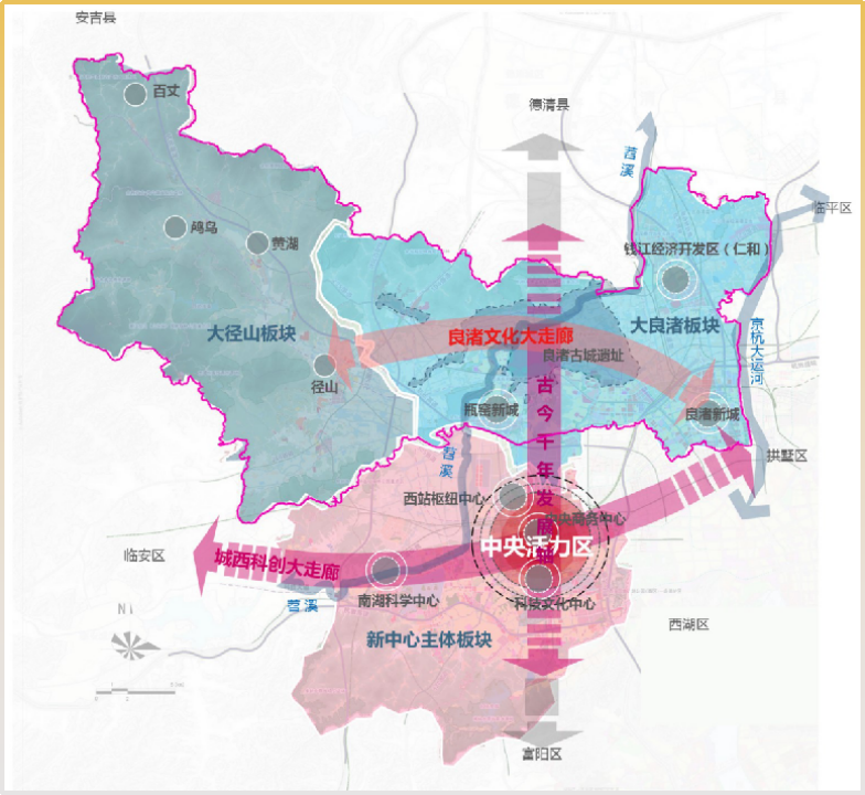 答:新中心的发展是杭州建设世界一流的社会主义现代化国际大都市的战略布局,也是建设长三角一体化发展的重要载体。目前,良渚文化大走廊的建设将促进余杭实现文化与科技交融、历史与现代交汇、人文与经济并进、城市与乡村互动、人与自然和谐共生。