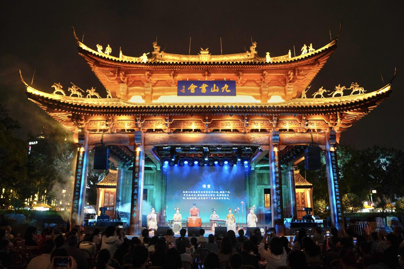九山书会·大宋戏仓“百戏养生集”活动从5月1日开启,延续至5月4日。活动期间,还有自得琴社的古琴演出、戏曲家们共同演绎的“百戏展演”、国风乐队演出等等,现场还准备了中医义诊。“这边中医问诊把脉,那边听戏滋润心灵,这样有趣又有用的活动,我觉得可以多来几场。”黄妍说。(徐景萱/文 温州市鹿城区委宣传部/供图)