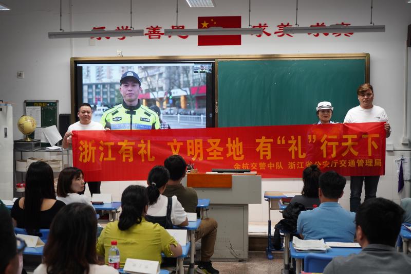 5月8日,杭州市余杭区舟枕小学特别邀请了余杭交警中队交通安全宣讲员卢玉琴警官开展交通安全宣传讲座。讲座上,卢警官提醒家长们要自觉遵守交通规则,给孩子们做好榜样,接送孩子们上下学要有序停放车辆;驾驶电动车的家长要规范佩戴安全头盔。