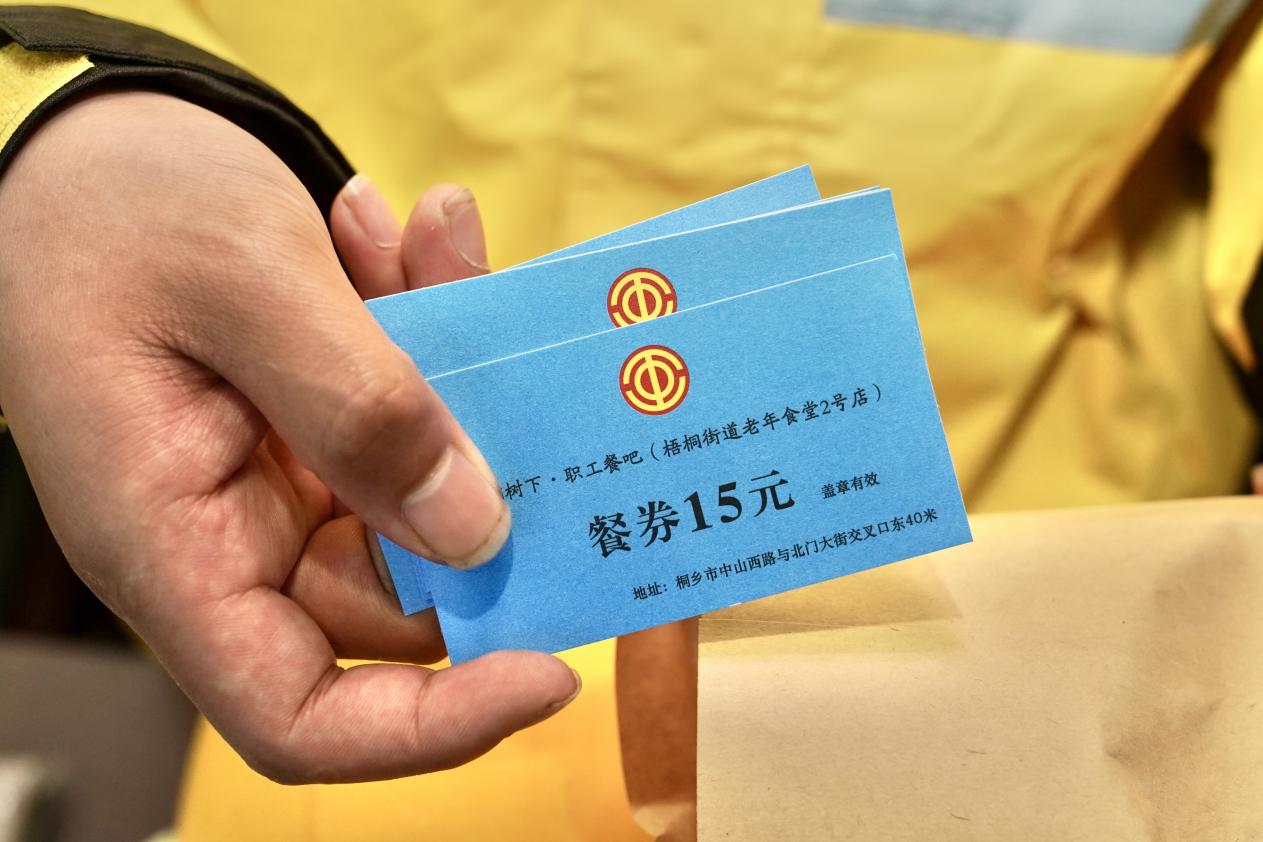 日前,浙江桐乡市总工会为市区50名外卖骑手发放了爱心餐券,为他们送去了“娘家人”的关怀。