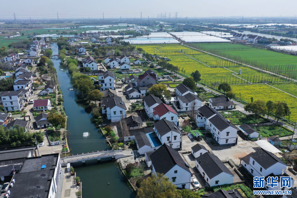 这是浙江省嘉兴市嘉善县姚庄镇横港村景色(2024年3月29日摄,无人机照片)。新华社记者 徐昱 摄