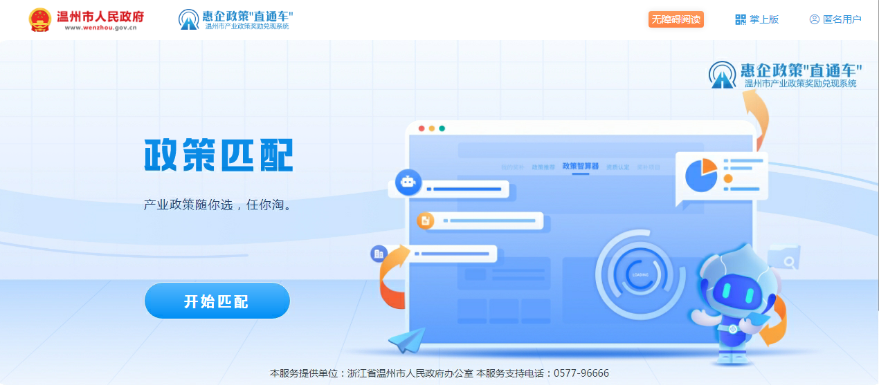 企业可在温州市惠企政策“直通车”平台,找到“政策计算器”进行政策匹配。