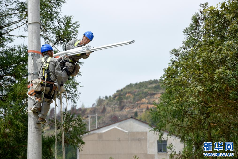 国网温州供电公司工作人员正在安装智慧光伏路灯。新华网发 国网温州供电公司供图