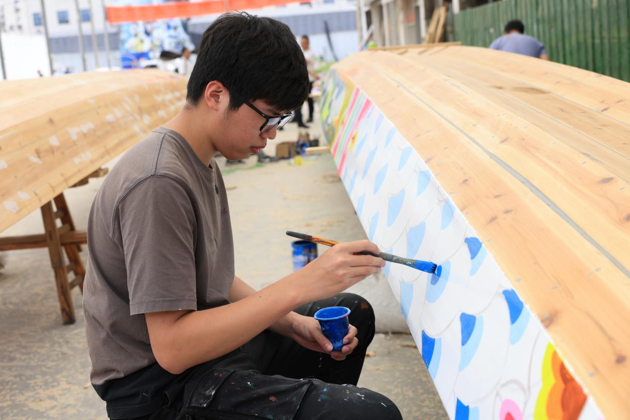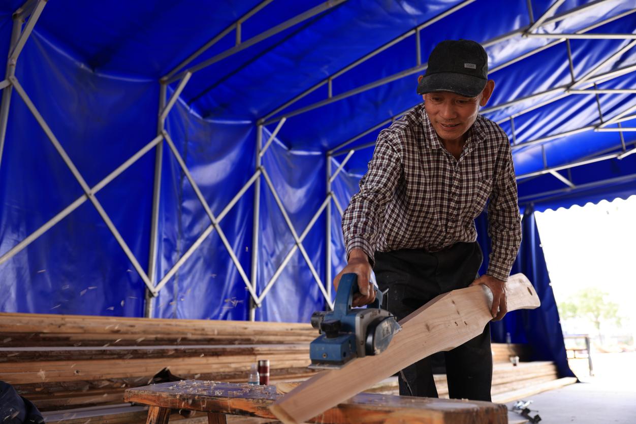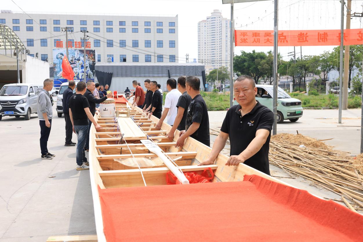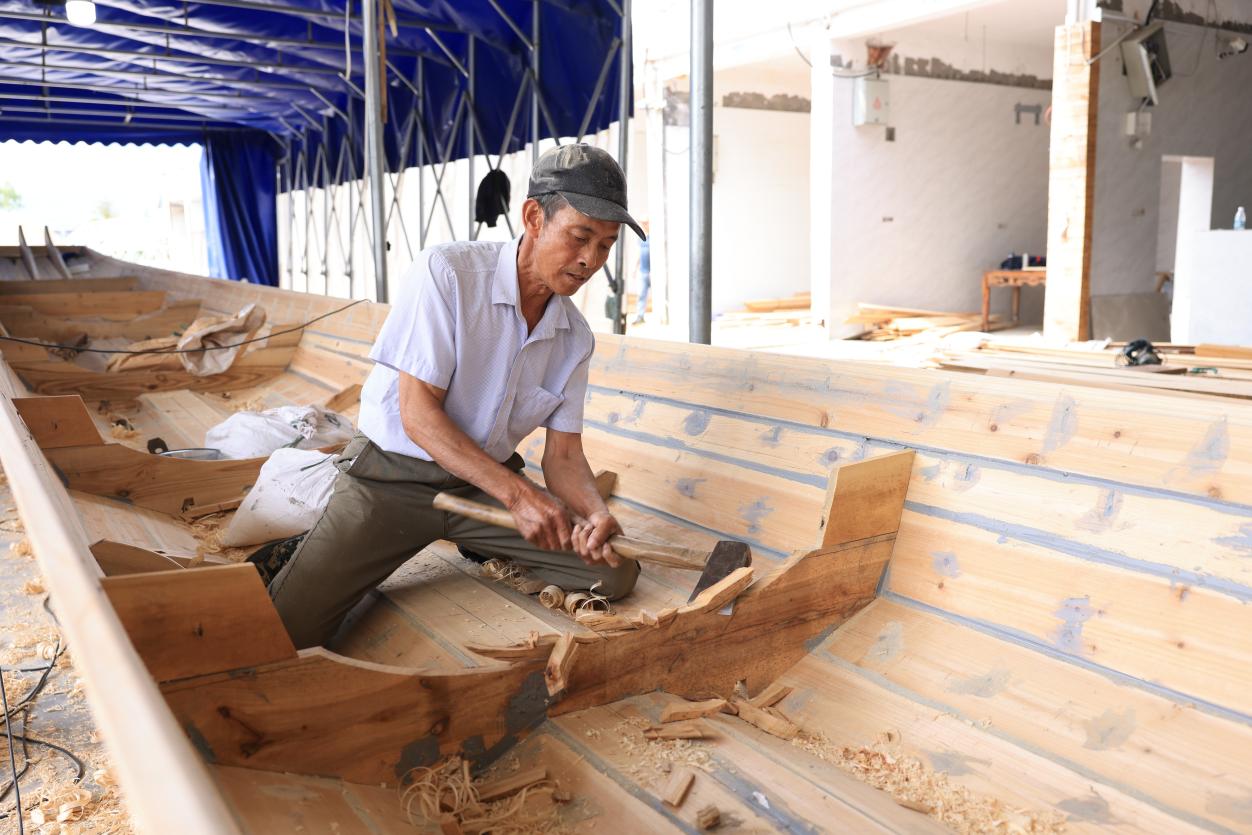 基地负责人池晓雷说,近段时间以来,他们一直处于“爆单”状态,基地的15个师傅都在加班加点赶工,平均每3至5天交付一艘龙舟。“目前我们交货发出去的,加上手里的订单,总共有60来艘龙舟。”池晓雷说。
