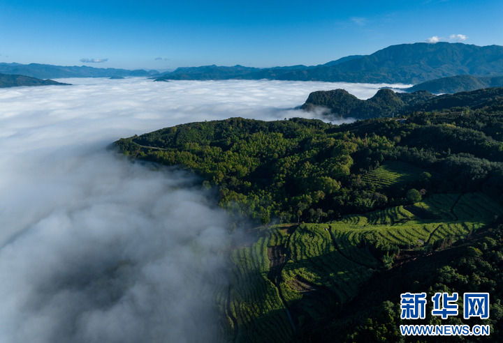 这是在云南省临沧市沧源佤族自治县拍摄的云海间的茶园(资料照片)。新华社记者 江文耀 摄