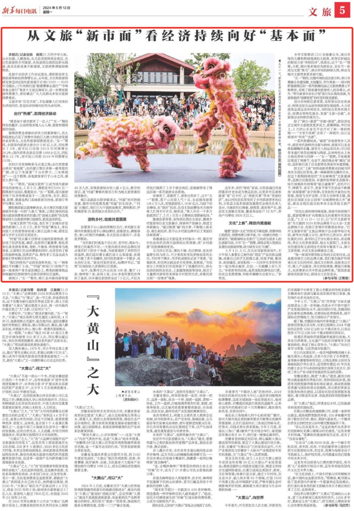 “居民出游热情持续高涨,旅游市场持续升温,旅游稳增长扩内需惠民生的重要作用更加凸显。”5月11日—12日,以“打开文旅新市面”为主题的2024世界品牌莫干山大会·文旅品牌推介会,在浙江省湖州市德清县举办。“打开文旅新市面”文旅品牌推介会由新华每日电讯、新华社内蒙古分社、新华社江西分社、新华社重庆分社、新华社辽宁分社联合举办。活动期间,来自文化和旅游部、地方文旅部门、文旅企业的嘉宾和文旅网红代表等齐聚莫干山,推介文旅资源,共话文旅品牌建设之道。