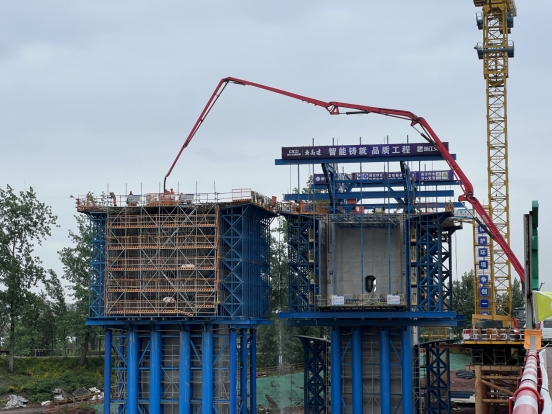 武义江特大桥是甬金衢上金华城区段项目关键控制性工程,全长2785.85米,其中主跨跨径达168米,是浙江省内在建主跨最长的预应力混凝土现浇箱梁。武义江特大桥共有四个“0”号块,此次完成浇筑的最后一块0号块,长12米,高10.5米,采用分层浇筑工艺,混凝土设计方量为762.5立方米。作为桥梁连续梁分节段施工时最先浇筑的施工单元,0号块位于主墩墩顶,是从主墩身向两边延伸的第一段,是连续梁施工的关键性节点。