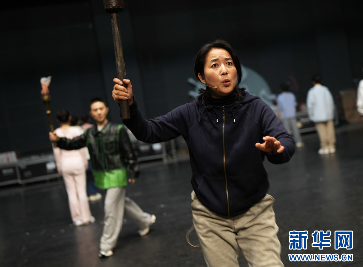 2024年4月7日,浙江小百花越剧团团长蔡浙飞在浙江杭州参加新编历史剧《苏秦》的排练。新华社记者 翁忻旸 摄