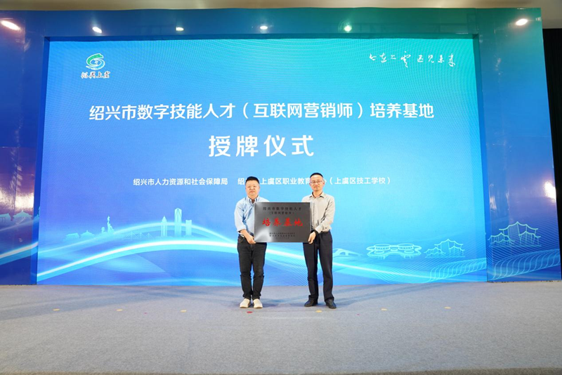活动上,绍兴市人社局、绍兴市市场监管局确立了上虞区职业技术中心(上虞区技工学校)为绍兴市数字技能人才(互联网营销师)培养基地,聘任了7名来自各区县的优秀主播代表为第一批绍兴市“创业导师”,同时签订了战略合作协议、数字技能人才合作培养协议。