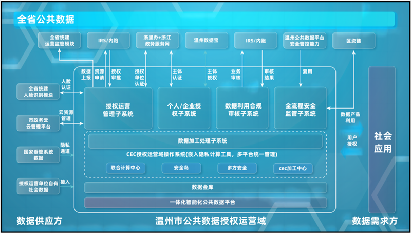 2023年10月30日,公共数据授权运营上线投用——“信贷数据宝”“无忧背调”“安诊无忧”,涉及信用贷款、人才招聘、智慧医疗等多项服务,成为温州市公共数据授权运营域建设中最先投用的三个场景。“数安港的这一成果,在全国属先行之举。”数安港相关负责人介绍,依托“两个中心”——浙江省大数据联合计算中心和浙江大数据交易中心温州基地,数安港构建公共数据授权运营域,推动发挥“数据要素X”效应,让更多“沉睡”的数据资源“活起来”“动起来”“用起来”,实现数据资源“变现”。