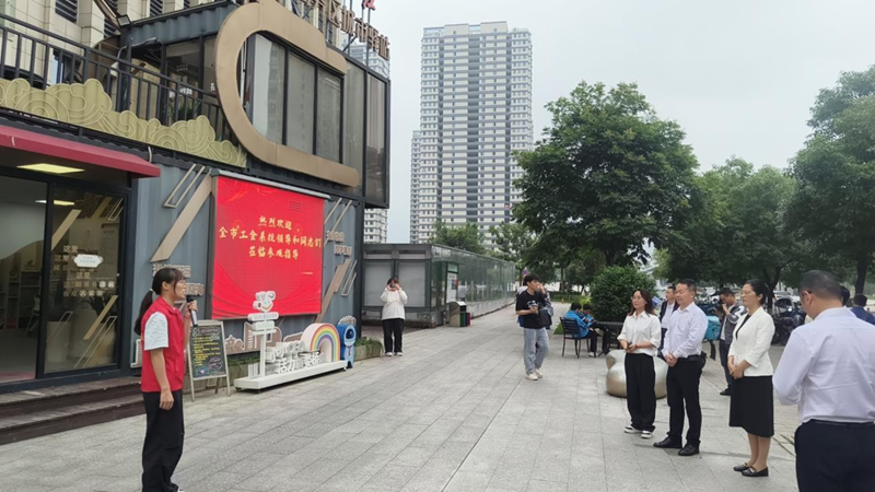 温州市各级工会相关人员在瓯海区中央商务区城市驿站观摩。温州市总工会供图