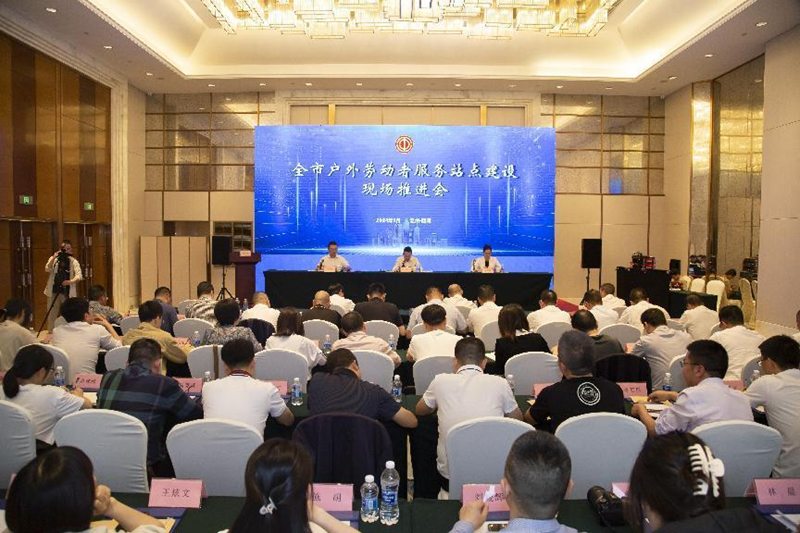 温州市户外劳动者站点建设现场推进会。温州市总工会供图