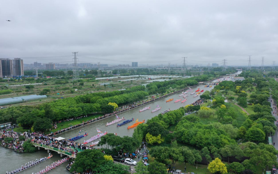 5月25日,浙江温州瑞安市举行龙舟巡游活动,五颜六色的龙舟挥浆逐浪,全民共享传统民俗盛事。
