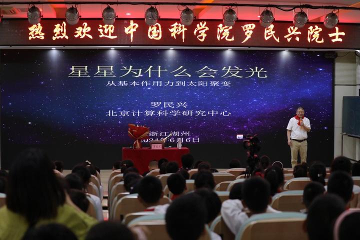 罗院士给孩子们带来的讲座是孩子们感兴趣又好奇的内容——《星星为什么会发光》。他通过具体的数据向同学们科普了太阳与北极星的亮度奥秘,通过解释利用光速的计算方法,让孩子们直观感受到了北极星离我们的遥远。罗院士还用最通俗易懂的语言解释了复杂的真理,学生们听得津津有味,不时地发出感叹。一颗要探索世界的梦想种子,在孩子心中悄然埋下。