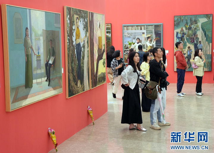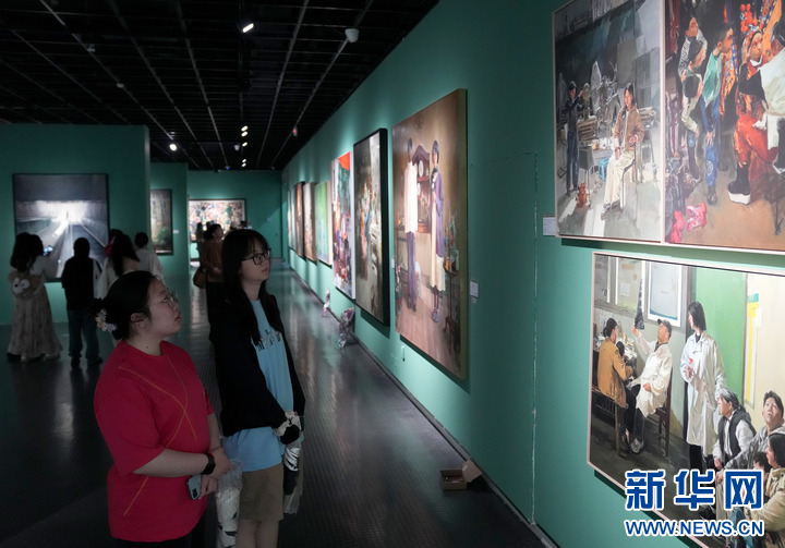 6月1日,观众在浙江美术馆观看中国美术学院毕业生的油画作品。新华社记者 韩传号 摄