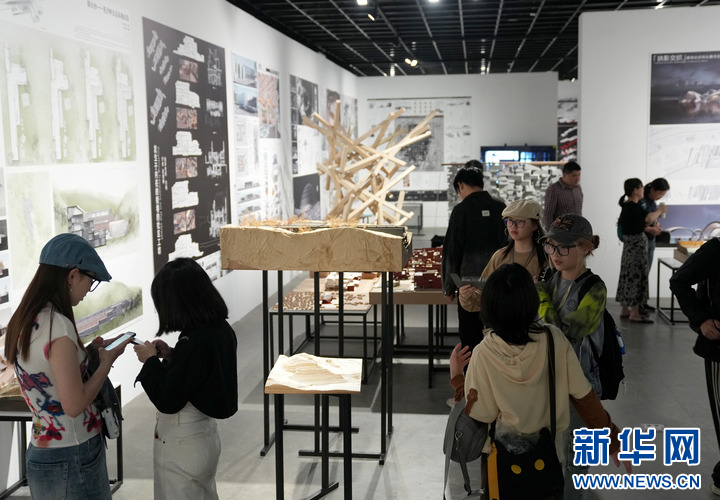 6月1日,观众在浙江美术馆观看中国美术学院毕业生的建筑作品。新华社记者 韩传号 摄
