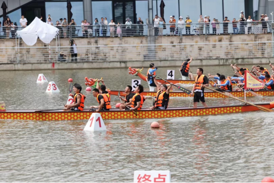 今年首次设置的旱地龙舟体验区吸引了不少大人孩子排队体验。“水上龙舟不方便体验,旱地龙舟安全得多,孩子看完龙舟赛,刚好可以到这来过把瘾。”市民童先生说。
