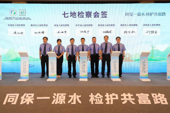 为共同保护新安江——千岛湖流域生态环境,共同推进绿色美丽长三角建设,按照“检察护企”“检护民生”“检护法治”三个专项行动要求,近日,浙江省杭州市淳安县、建德市,安徽省黄山市屯溪区、徽州区、休宁县、歙县以及安徽省宣城市绩溪县等七地检察机关相约在千岛湖畔,以“同保一源水 检护共富路”为主题,深入探讨新安江——千岛湖生态环境保护合作区检察协作机制建设。