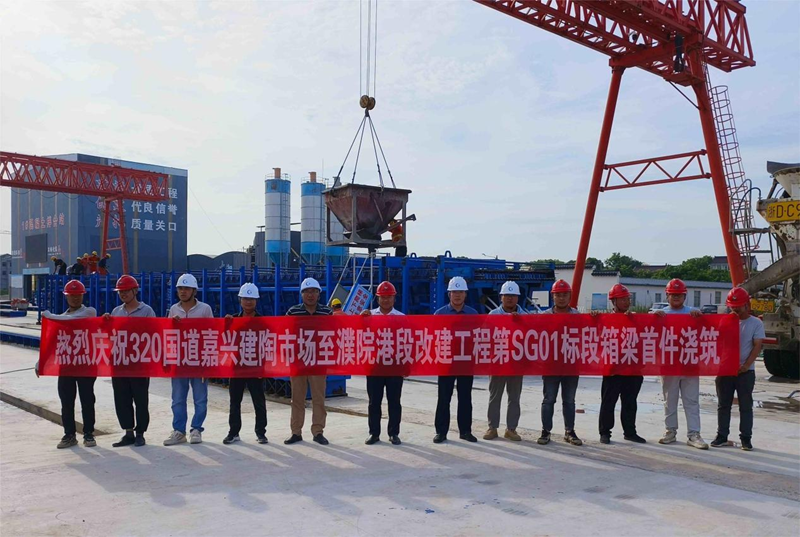 近日,在浙江交通集团下属320国道嘉兴建陶市场至濮院港段改建工程项目预制梁场内,首件预制小箱梁的浇筑工作完成。该箱梁长32米,梁高1.9米,顶宽2.844米,底宽1.05米,重量约达120吨,其成功浇筑标志着该项目正式迈入桥梁上部结构施工新阶段。