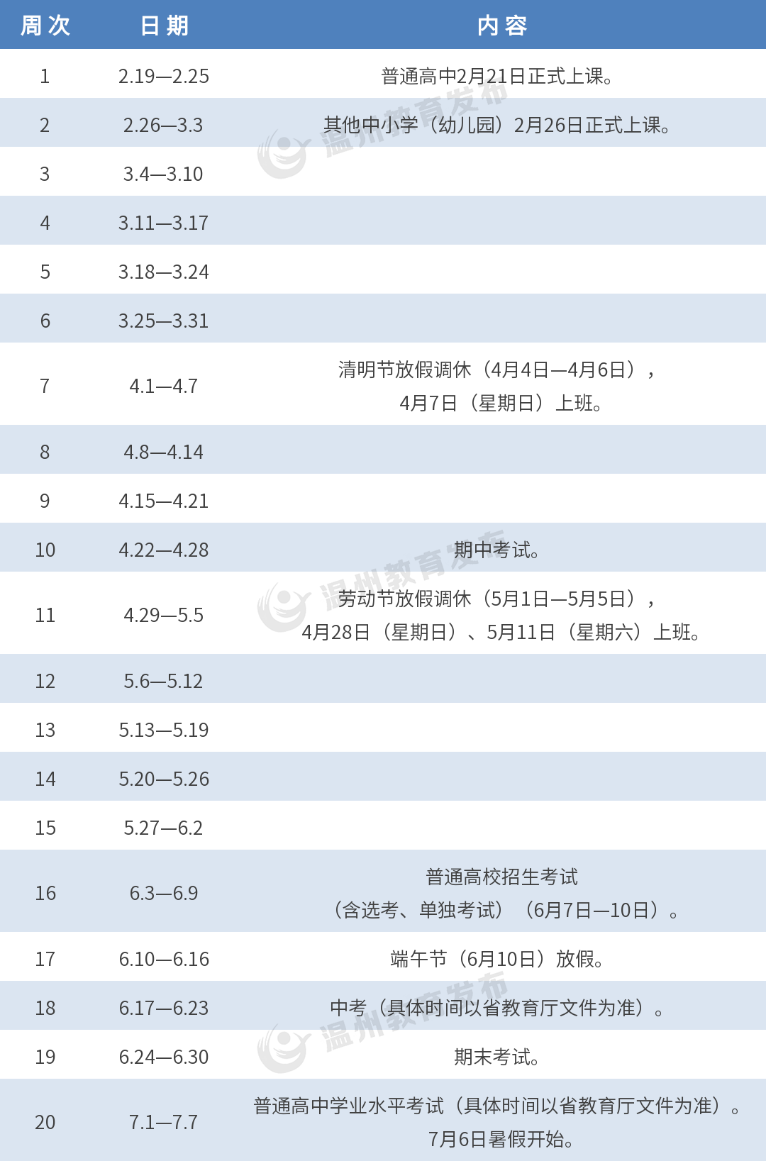 普通高中学校:高一高二期末考试时间为6月26日至28日。暑假原则上从7月8日开始,教师原则上于7月9日离校。
