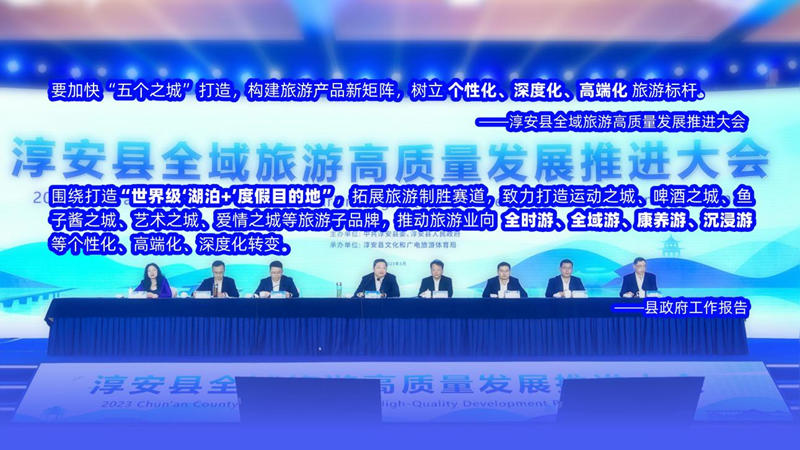 会上,淳安县公布了“五个之城”三年行动计划,围绕“产业赛道在哪里”“主要项目在哪里”“活动同容在哪里”“宣传营销怎么做”提出总体目标、工作举措、重点项目。运动之城,树立打造国际体育旅游名城的目标定位,聚焦“骑行”“水上”“路跑”三大赛道,实施十大工程,到2026年体育旅游游客接待量达到350万人次以上;艺术之城,聚焦“艺术湖区”“艺术乡建”“艺术城区”三大领域,实施五大行动,打造一条新农人艺术作品上市交易变现的产业赛道,摸索艺术助推共同富裕的“淳安之路”;啤酒之城,聚焦千啤小镇1个主场地+全县域X个啤酒消费场景,推进六大专项,打造国内知名的精酿啤酒“体验目的地”;鱼子酱之城,聚焦餐饮能级提升、产业融合发展、宣传氛围营造三大行动,实施十大工程,打响千岛湖“有机鱼+鱼子酱”双星闪耀的美食IP;爱情之城,聚焦婚纱旅拍、户外婚庆、蜜月度假三大产业,实施三大工程,打响“浪漫千岛湖”品牌,建设全国旅拍目的地和最佳婚礼举办目的地。