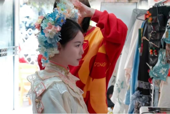 随着收入的增加和创业经验的积累,王小可决定扩大规模。2023年7月,她开设了文成百丈瀑布除景区自设外的首家汉服租赁店,拓展业务范围,除汉服外包括戏服、旗袍、马面、其他民族异域风情等具有中国文化特色的服饰,成功实现了月收入破万。2023年11月,在大罗山开设了温州首家非遗手工簪花体验店,其特色的非遗簪花与漆扇服务受到了强烈的欢迎,“簪花+汉服服饰+造型写真”模式吸引了大量客源,除了女性外还有不少男性前来体验,带动了当地服饰体验店发展,掀起簪花热潮。